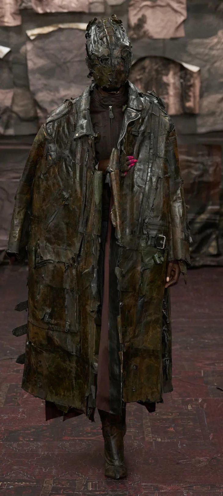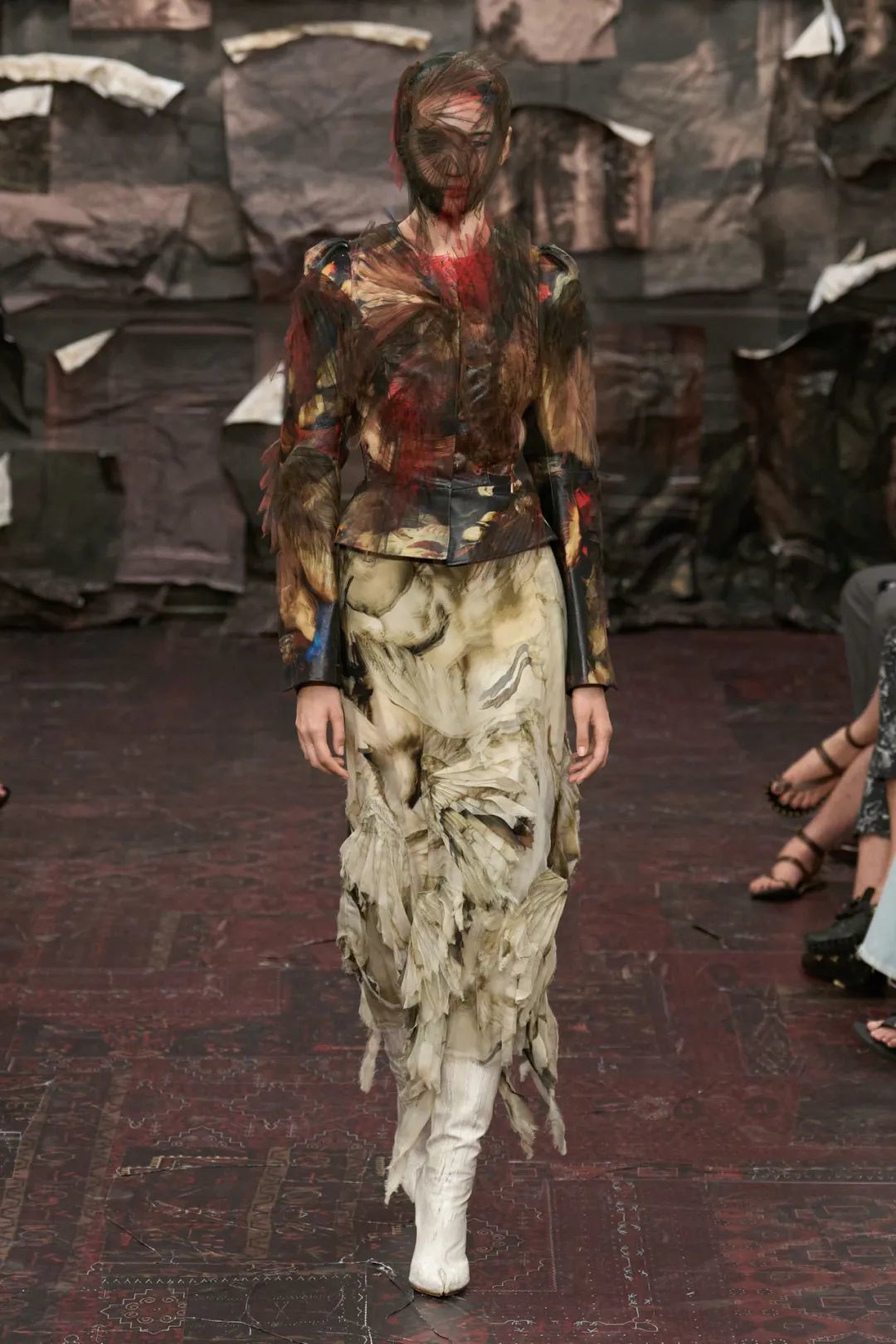 即便是新闻稿里对每件衣服都进行了说明,人们也难以参透那些工艺。可以看到的是,Glenn Martens用Martin Margiela的手法为Martin Margiela的档案作品增加了新的「涂层」。
