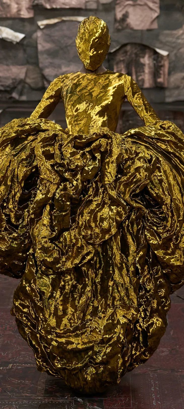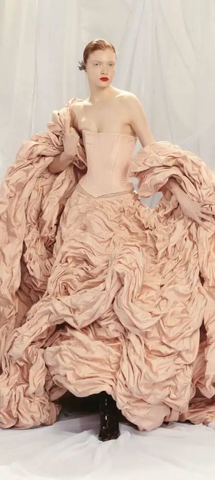 这个系列有他自己的签名吗?2022年,他作为Jean Paul Gaultier客座设计师所设计的那个高级定制系列也被复现了,金属丝混纺的公爵缎礼服就是来自他本人的手笔。
