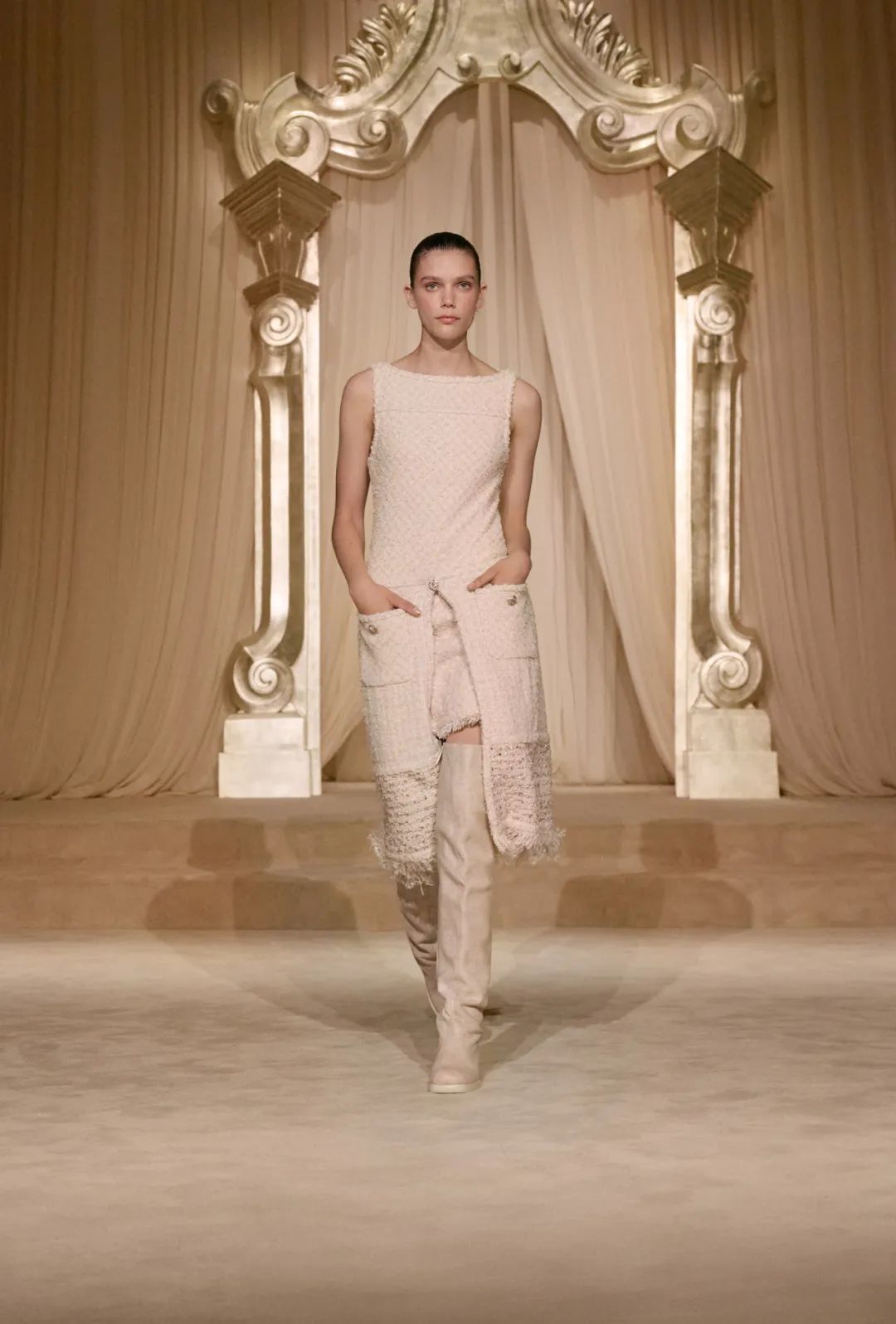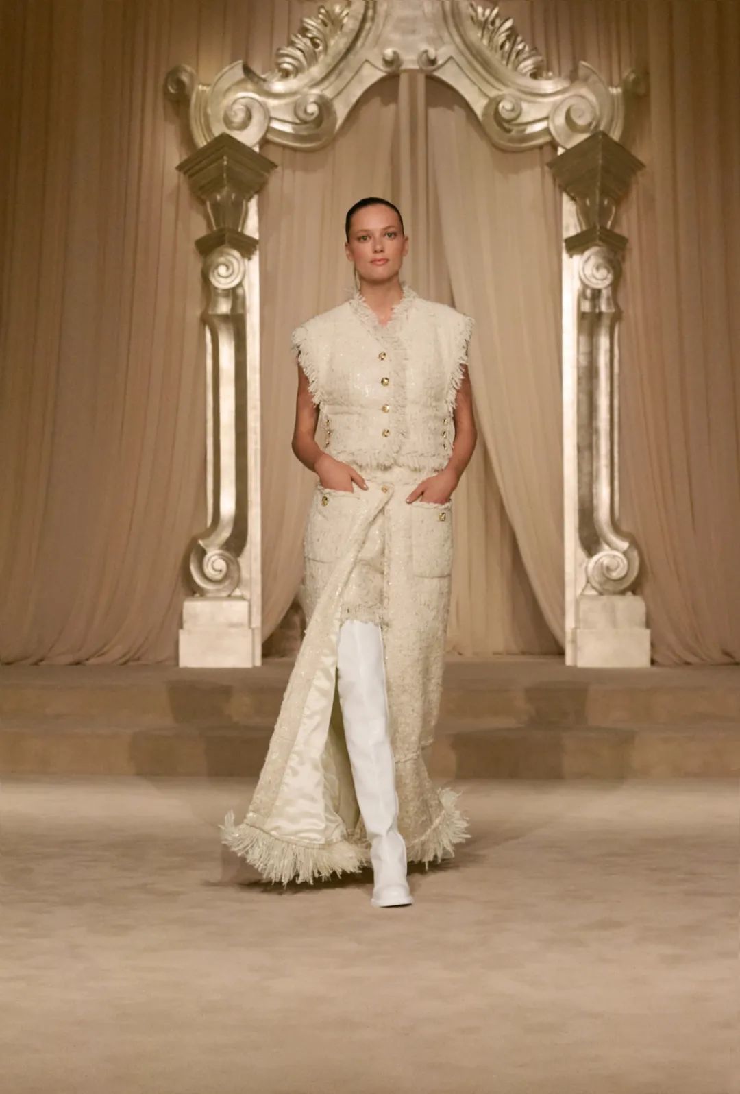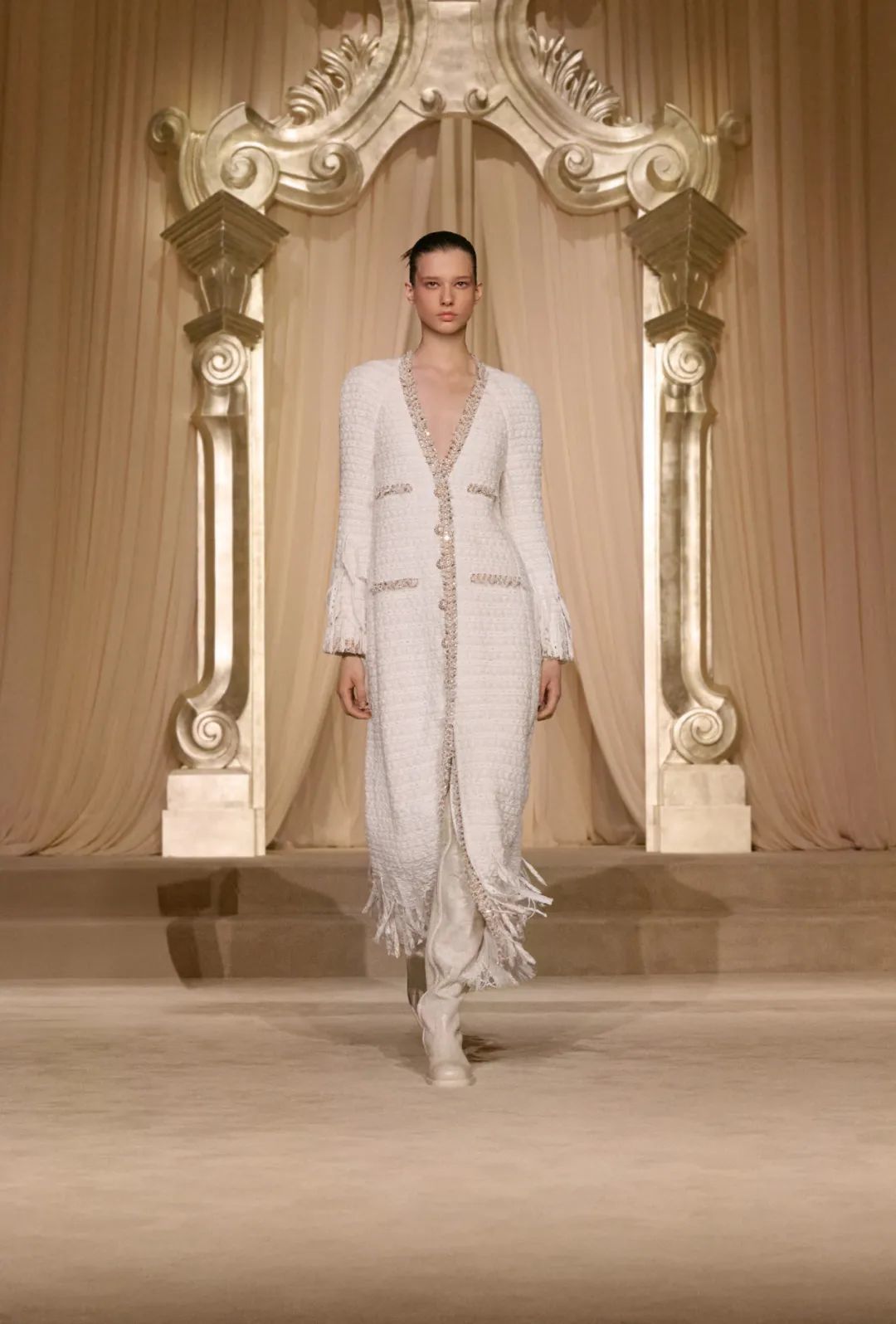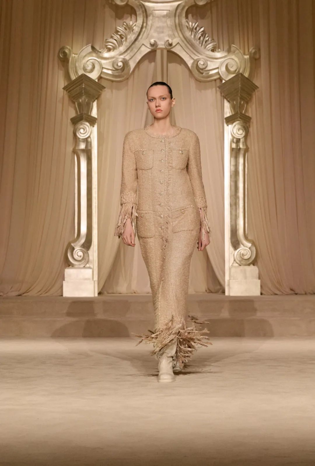 尽管这位设计师已进入CHANEL半年余,但他依然在蓄力准备,暂时还没有拿出写着自己名字的CHANEL系列。不过,从精品部创意工作室团队设计的2025秋冬成衣系列就可以看到CHANEL的变化:回归简约、舒适。这场CHANEL 2025/26秋冬高级定制服系列作为精品部创意工作室集体创作的最后一个系列亦然。