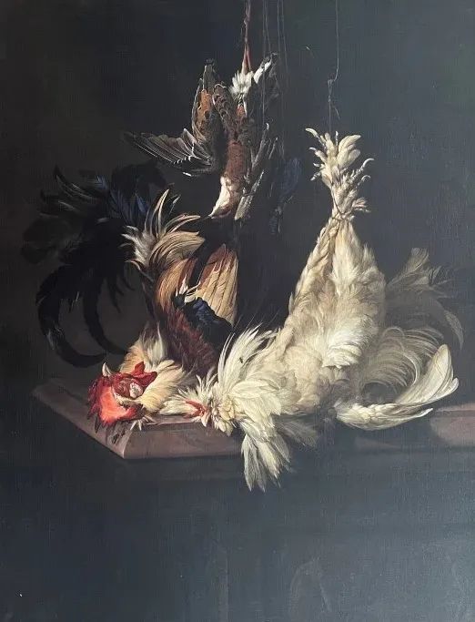 17世纪荷兰画家Willem van Aelst(1627-1683)的狩猎主题静物通过类似工艺,在皮革与织物上实现栩栩如生的羽毛。