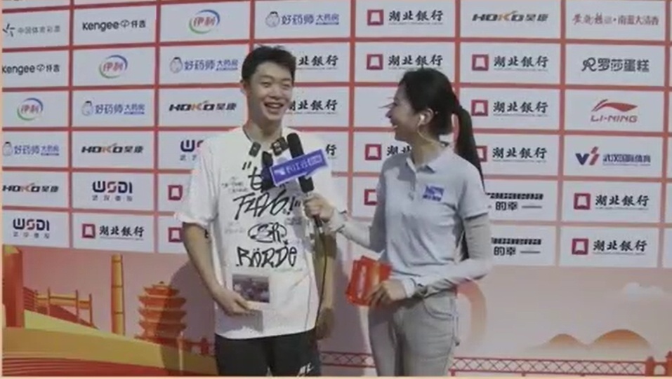湖北省游泳队名将张子扬赛后接受采访。图/直播截图