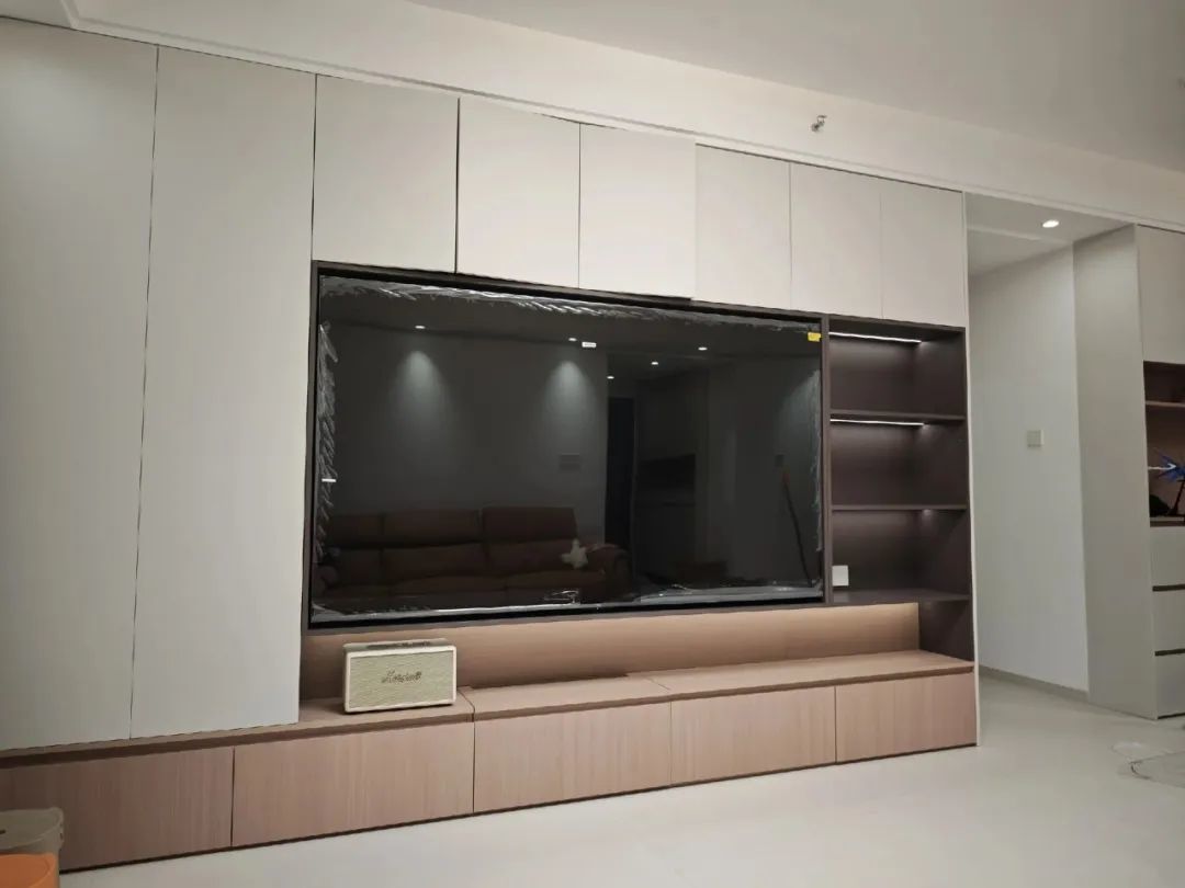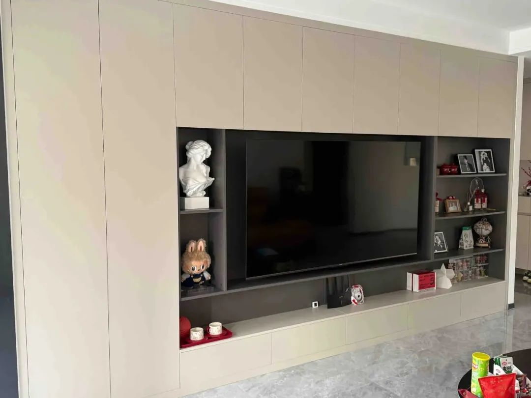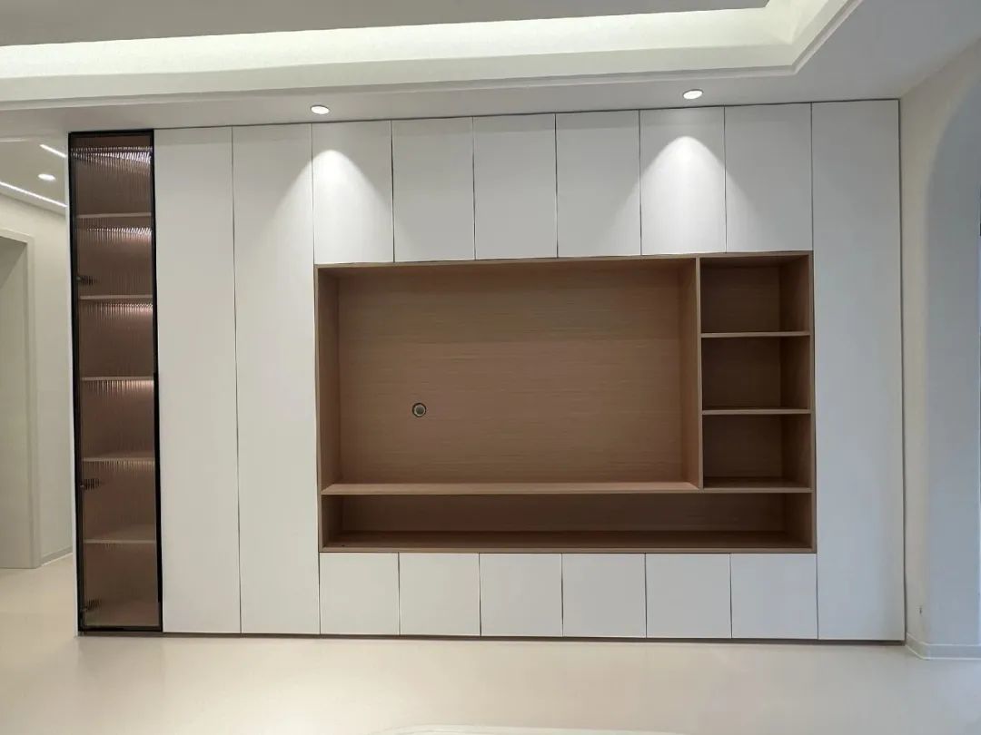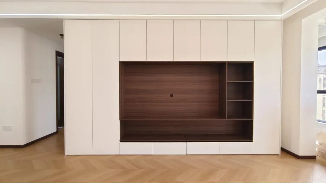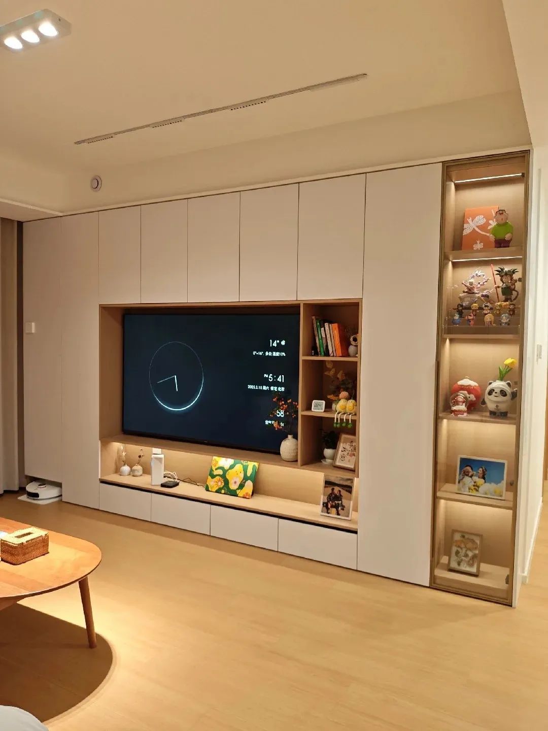 后悔没早做!入住后我发现——这满墙的收纳柜,实用性简直爆表!那些曾经无处安放的杂物、孩子的玩具、闲置的电器水杯,统统被它“吞”了进去,客厅清爽利落多了。