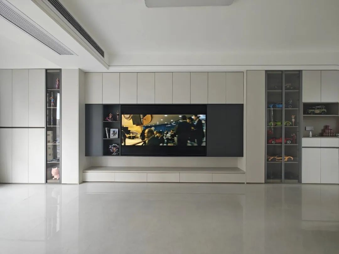 预算低可以做壁挂式空调,能节省地面空间,让电视柜的设计更完整,整体布局也更协调,也不会影响空调的使用效果;预算充足的话,可以选用风管机或中央空调,将内机隐藏在吊顶内,整体效果更加大气美观。