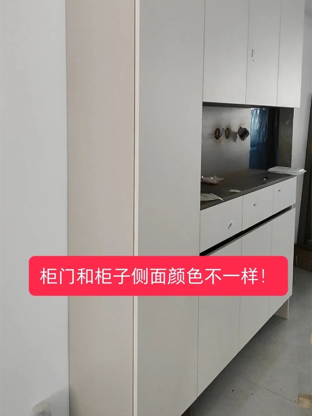 很多人为了省钱,一般柜体与柜门是不同板材的,若安装设计不注意,侧板与柜门颜色材质不同,就会导致视觉上割裂感强,破坏了柜子的整体感,看起来格格不入,显得廉价。