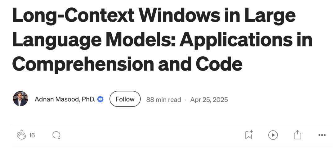 文章链接:https://medium.com/%40adnanmasood/long-context-windows-in-large-language-models-applications-in-comprehension-and-code-03bf4027066f