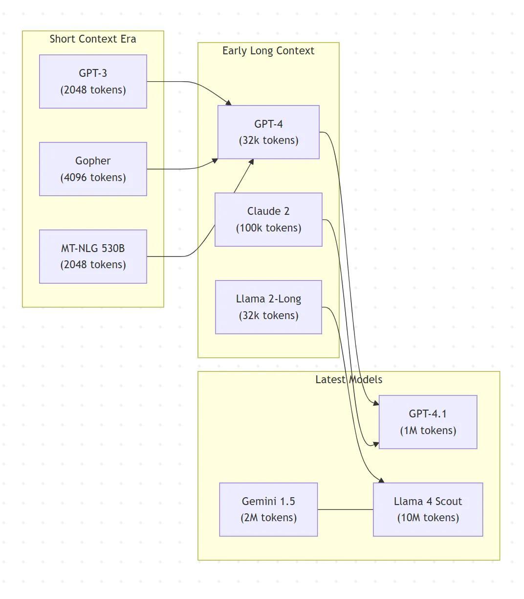众所周知,现代大型语言模型(LLM)的上下文窗口普遍有限 —— 大多数模型只能处理数千到数万 token,比如早期的 GPT-3 仅有~2,048 token。虽然近期有些模型已经拓展到了百万级甚至千万级 token 窗口(如 Meta 的 Llama 4 Scout 宣称可达 1,000 万 token)。