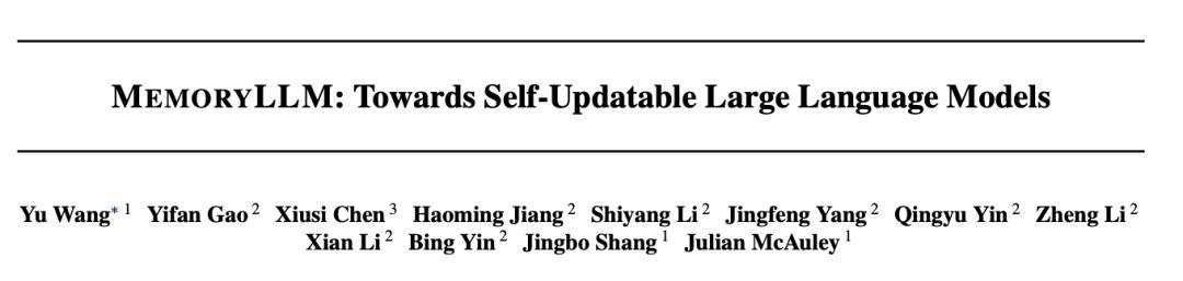 论文标题:MemoryLLM: Towards Self-Updatable Large Language Models