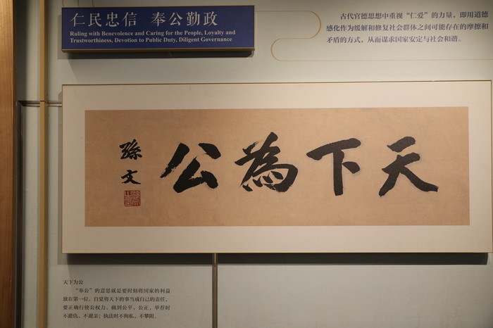 第三单元“言行实践 中流砥柱”聚焦历史上的官德实践。通过中国古代流传下来的诸多官德著作、家训、官箴等史料文献,展现了“清、慎、勤”“修身为本”“诚意正心”等道德实践。多媒体互动装置还收录了欧阳修等20位历史名臣的廉政事迹,观众可通过触控屏查阅其政绩与评价,在互动中更为深刻地体会到官德的社会影响力。