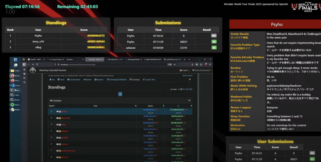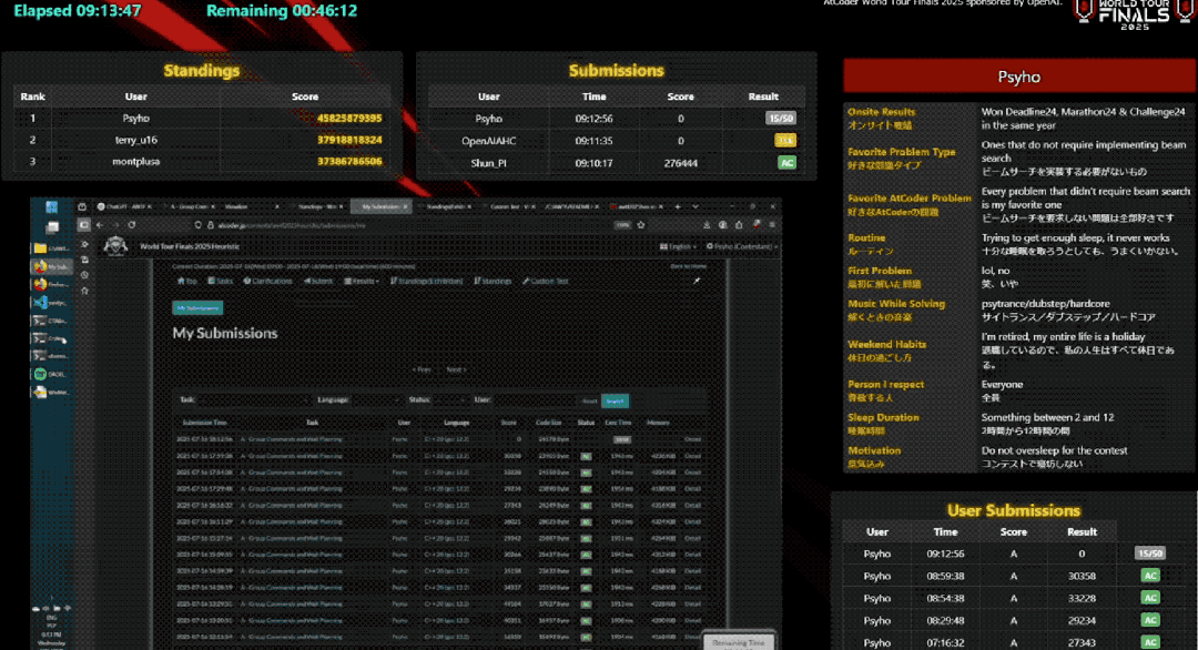 在刚刚落幕的AtCoder世界巡回总决赛上,12名决赛选手两天时间里展开角逐。