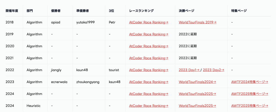 启发式是2021年才开始评级、2024年才开始竞赛的类别。在这类比赛中,参赛者比拼的是他们能在规定时间(10小时内)找到最优解。