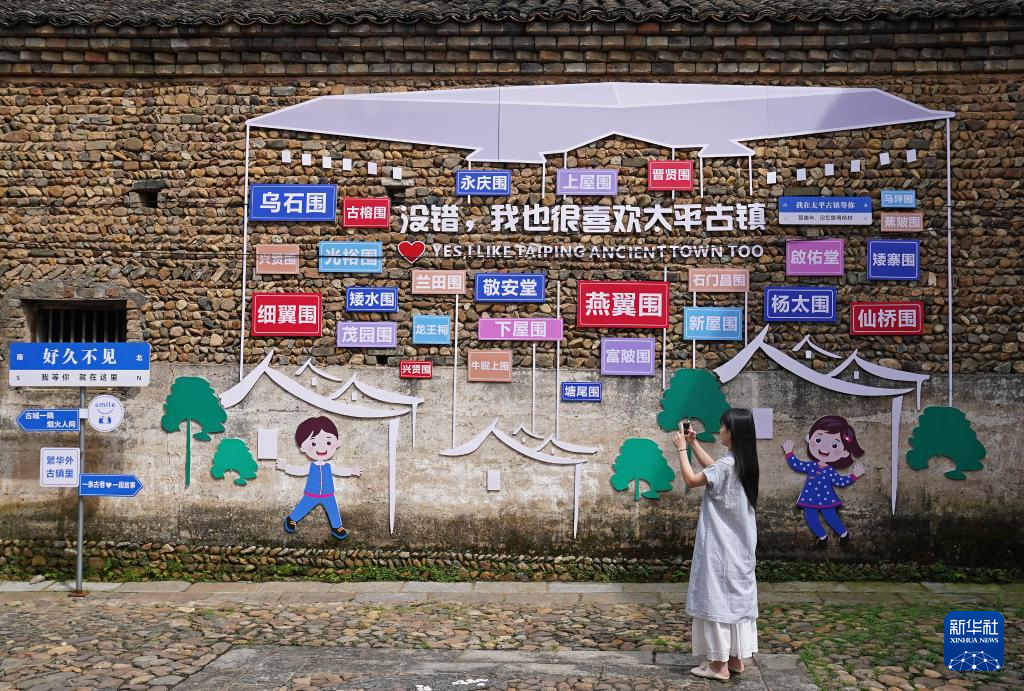 游客在龙南市关西镇关西新围前游览观光(6月19日摄)。