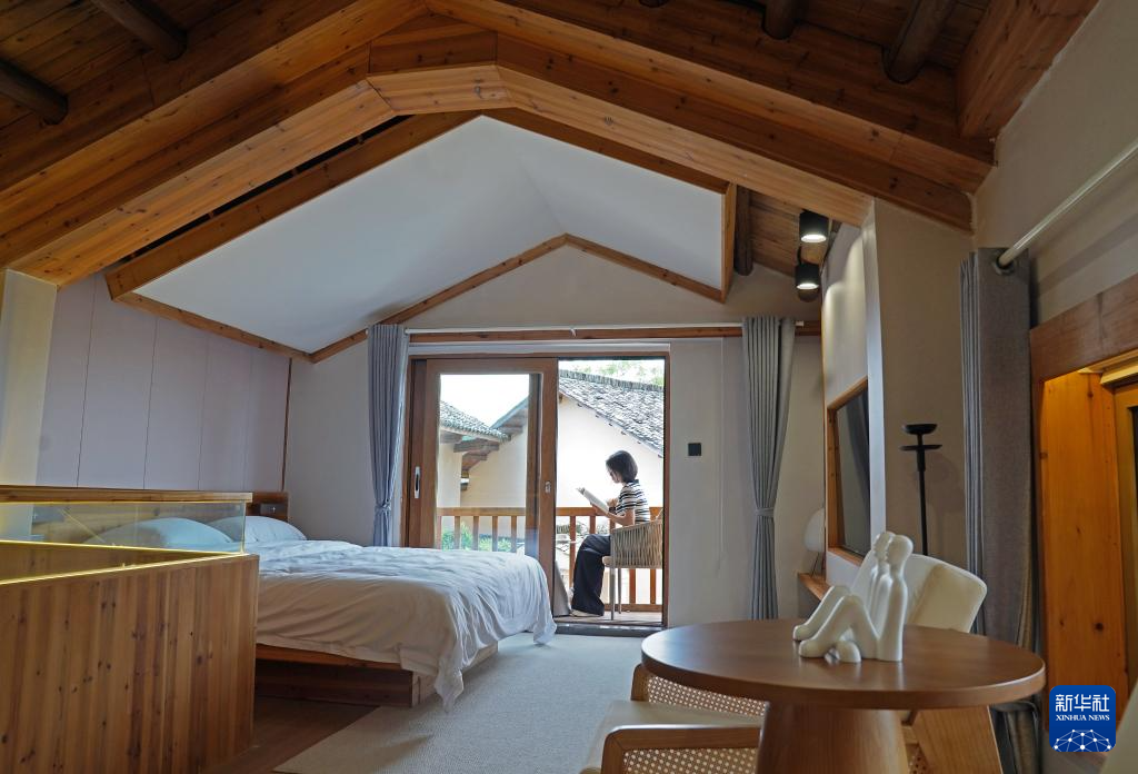 游客在龙南市关西镇的田心围民宿内休息(6月19日摄)。
