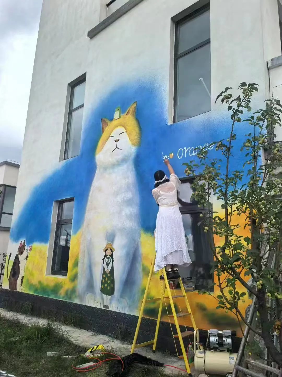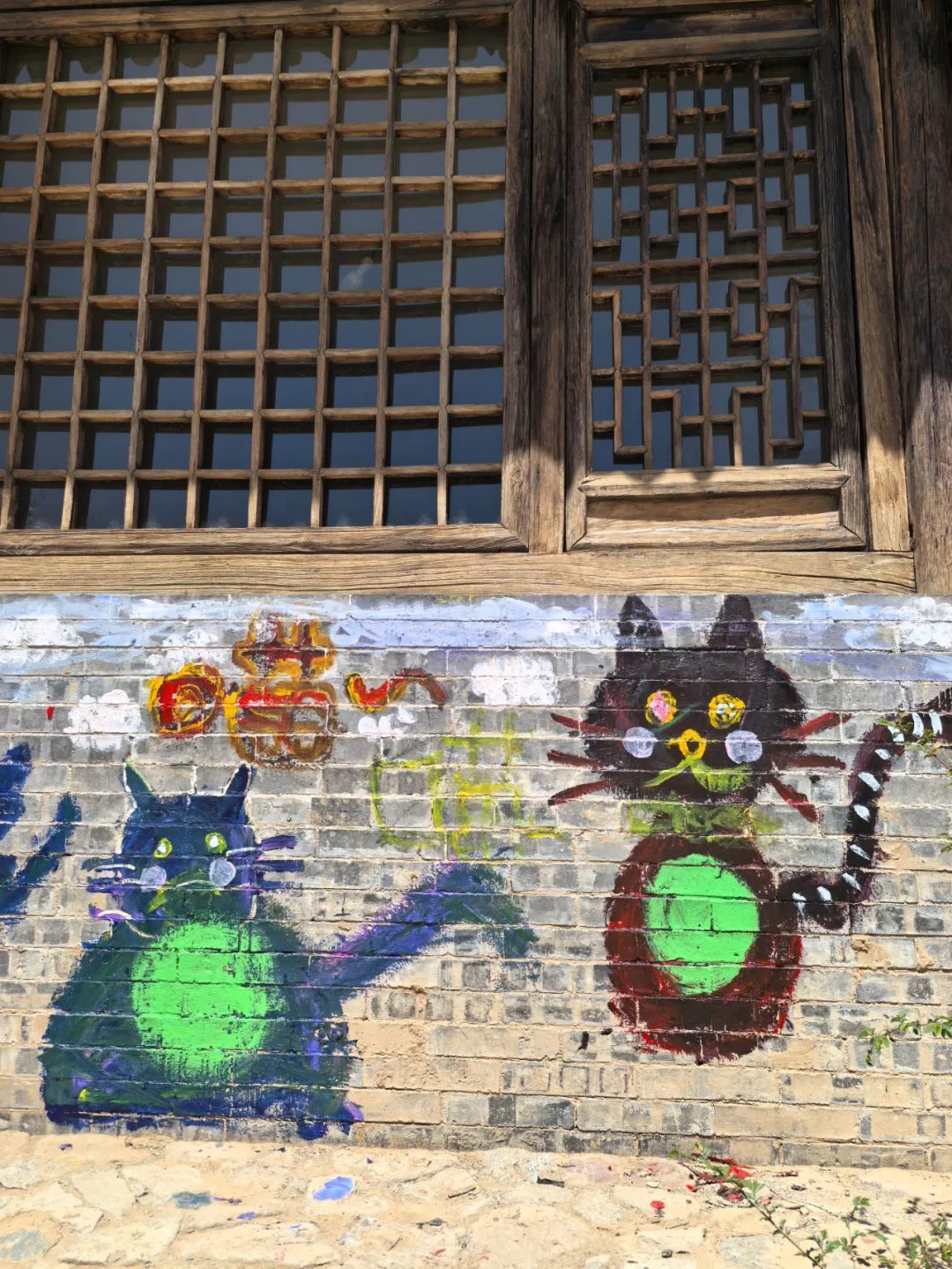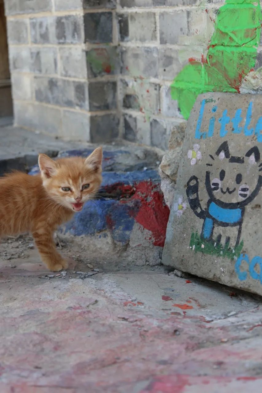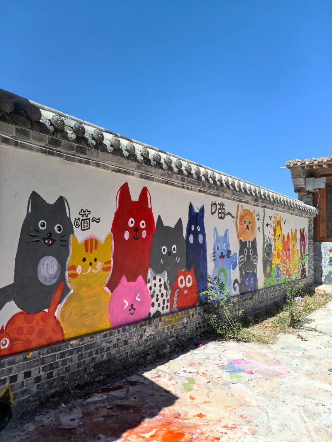 他们撸起袖子,在灰砖泥瓦的房子上涂涂抹抹,一幅幅猫的巨作就诞生了。