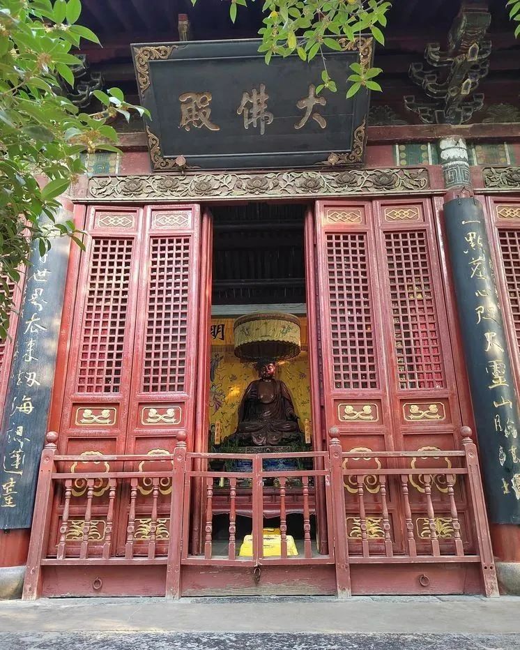 沿着中轴线继续前行,便来到了大佛殿,这是寺内的第二重大殿,也是举行重大佛事活动的场所。殿内供奉着释迦牟尼佛的坐像,佛像结跏趺坐,面容慈祥,双目微闭,仿佛在沉思着宇宙的奥秘。佛像背后是观音菩萨的海岛观音壁塑,描绘了观音菩萨在普陀洛伽山说法的场景,众多菩萨、罗汉、善财童子等环绕周围,神态各异,栩栩如生,展现了佛教的博大精深和慈悲为怀。