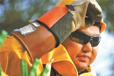 巡检人员全副武装,高温下作业