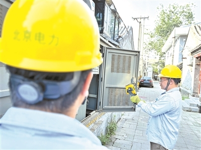 在胡同深处、在楼群之间,巡检人员采用带电作业方式,确保用户在检修期间用电“零感知”。这么热的天儿,户外工作不到半天的工夫,工作人员的工装已被汗水浸透。他说:“没什么,我们多跑一趟,用户心里就踏实一分。”