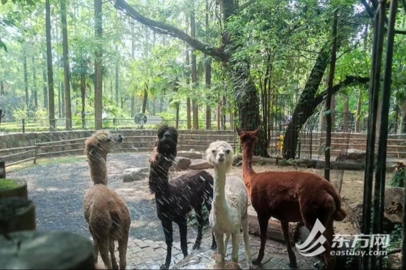 对于更喜欢玩水的动物们,饲养员们还提供“人工降雨”服务,手持水管为它们冲凉解暑。羊驼们就享受得眯起眼睛,甚至排着队求“搓澡”,湿漉漉的样子活像行走的棉花糖。