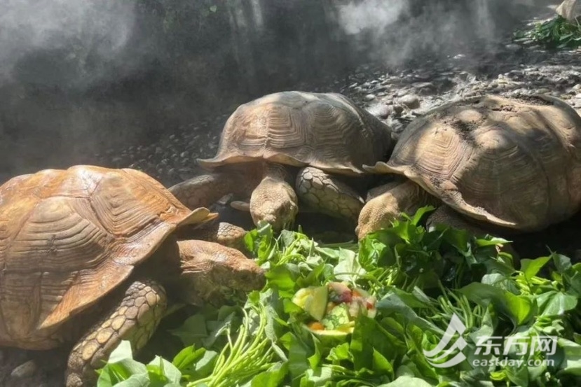 在饮食方面,上海动物园也为动物们准备了夏日专属“清凉套餐”。香甜多汁的西瓜,绝对是夏日消暑C位。同时,饲养员们在日常饲料中增加了葡萄、火龙果等多汁水果,来满足动物补水的需求,还会制作更凉爽的夏日特色冰品,如牛奶冰、水果冰和蔬菜冰等,依据动物身体情况适量投喂。