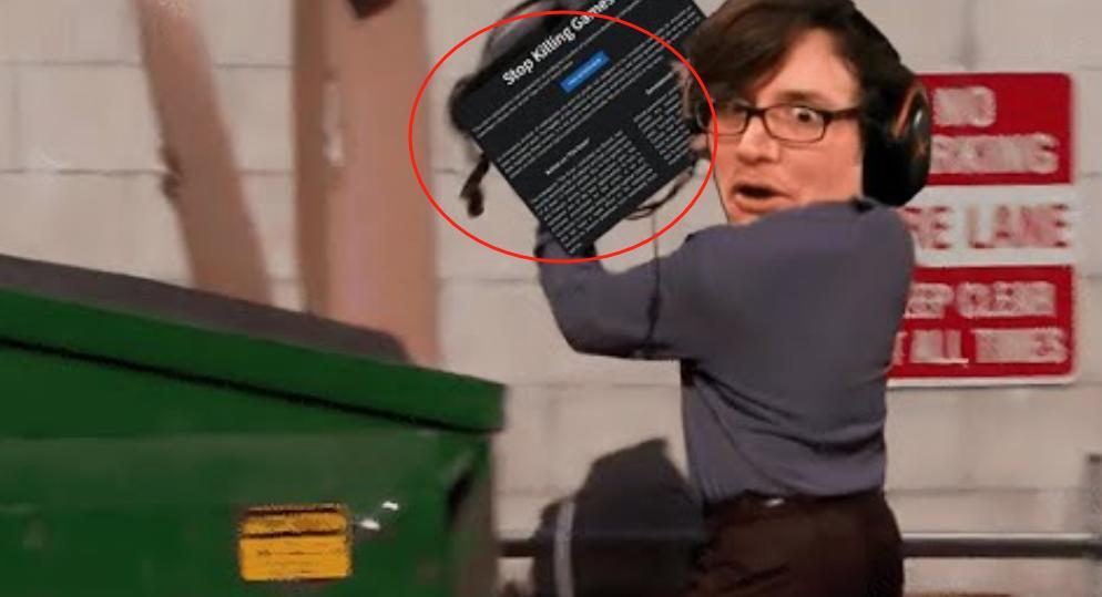 他万万没想到,事情以极其抽象的方式完成了反转。著名主播兼前暴雪娱乐开发者Thor,从“停止杀死游戏”运动诞生开始,就一直持批评态度,在视频中发表长篇大论抨击这场运动,甚至视频封面就是他将请愿页面丢进垃圾桶。现在Thor看签名数没啥达标希望了,干脆半场开香槟,得意洋洋地表示,“停止杀死游戏”就该失败。