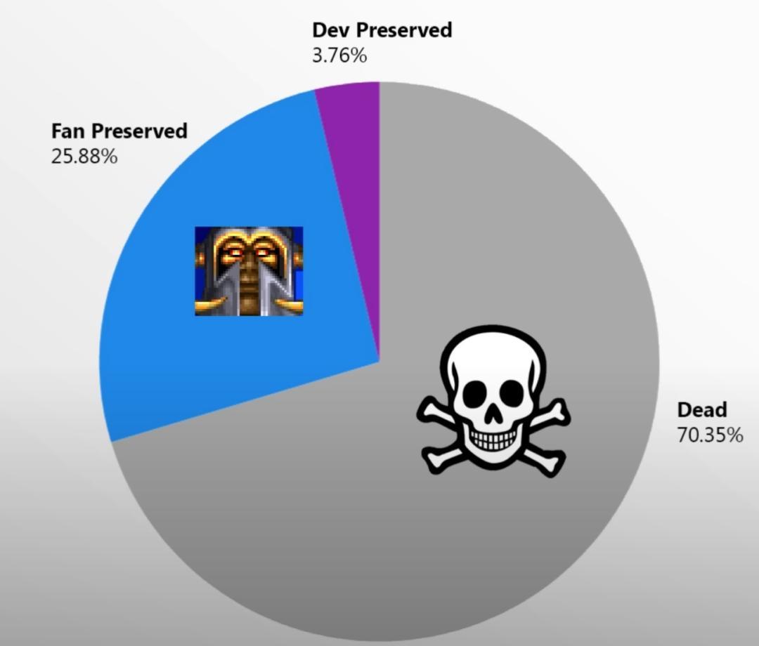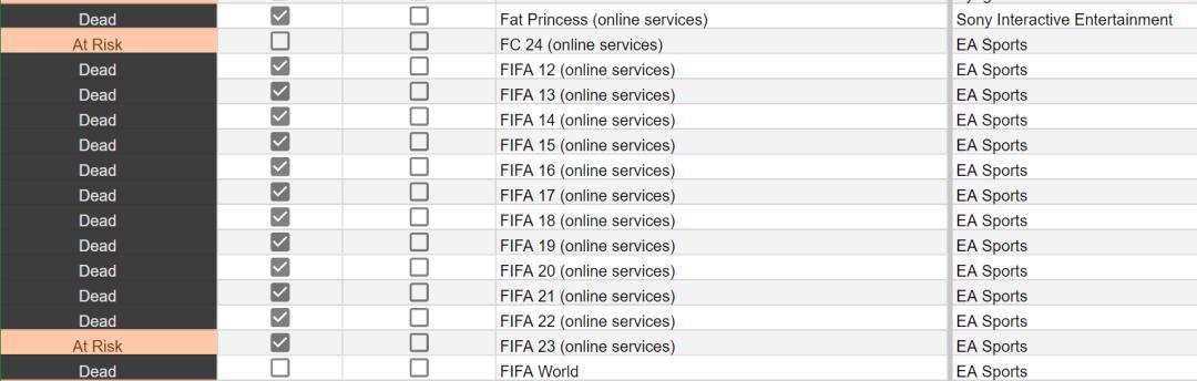 斯科特也抓住跟Thor论战的机会,发布了一个巨长的清单,统计了738个游戏,只有16个在停服后仍可本地玩,其余110个则交给粉丝运营私服,其余70%,则是已经彻底死亡、或者即将死亡而官方没有出台任何补偿措施的游戏。