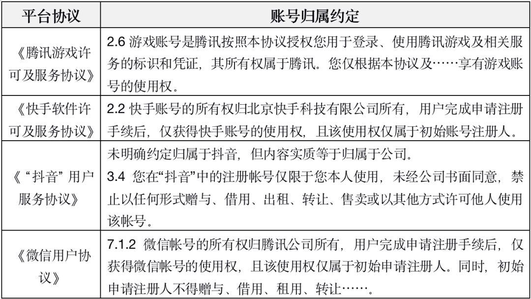 所以,几乎所有的互联网公司,都在使用协议中明确约定,账号归平台所有,用户仅仅是获得了使用权。这就意味着,你花了大量时间和金钱经营的互联网人生,没有任何一样东西属于你自己。不管是爆肝出来的游戏战绩,还是辛辛苦苦积攒的网友人脉,又或者是潜心创作出的作品,都建立于一个随时可能倒塌的空中楼阁。