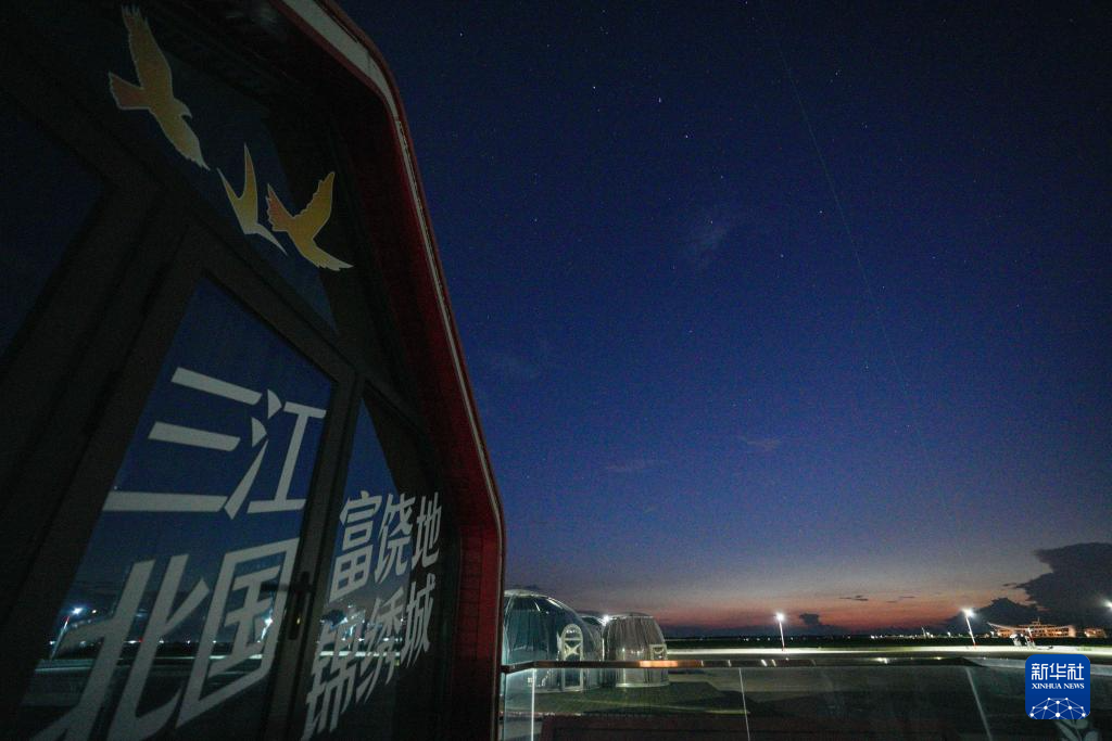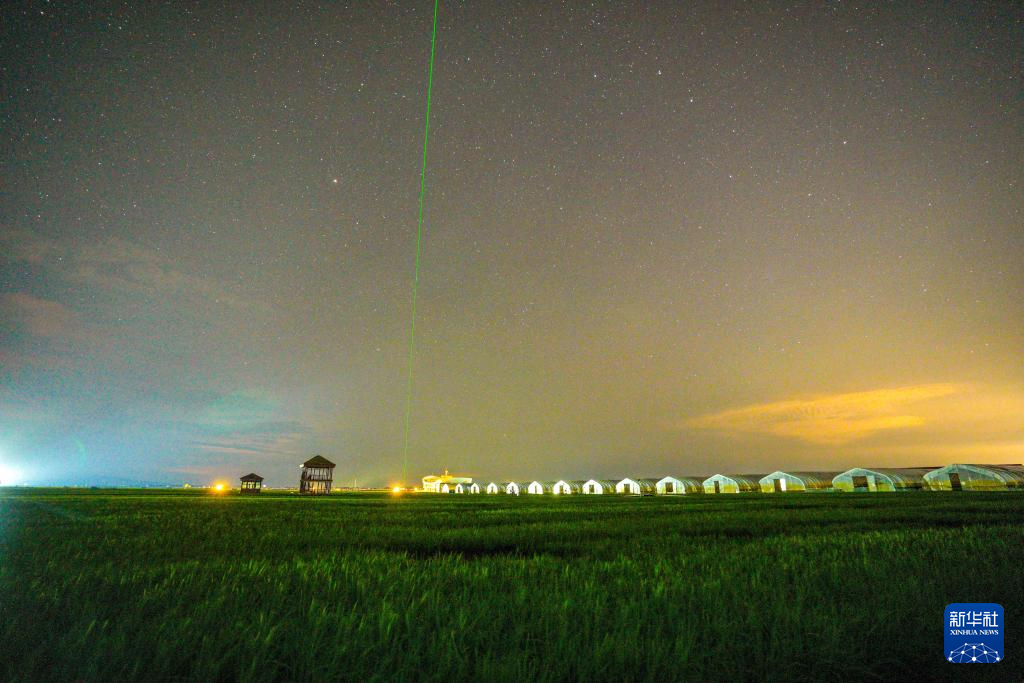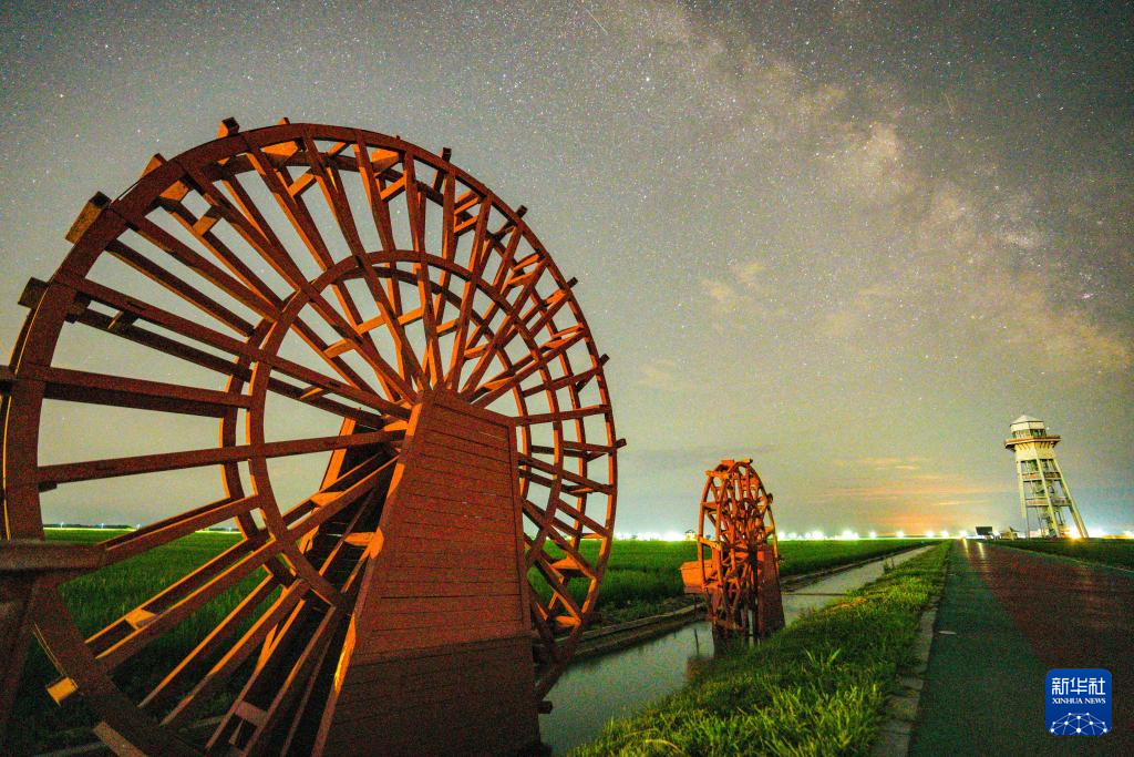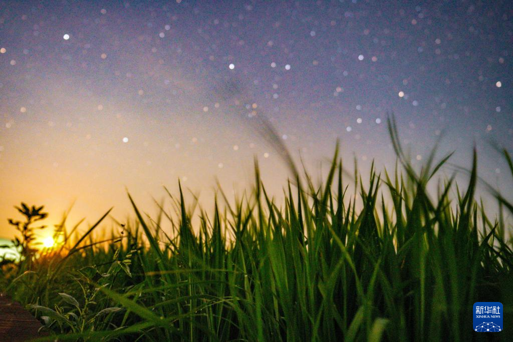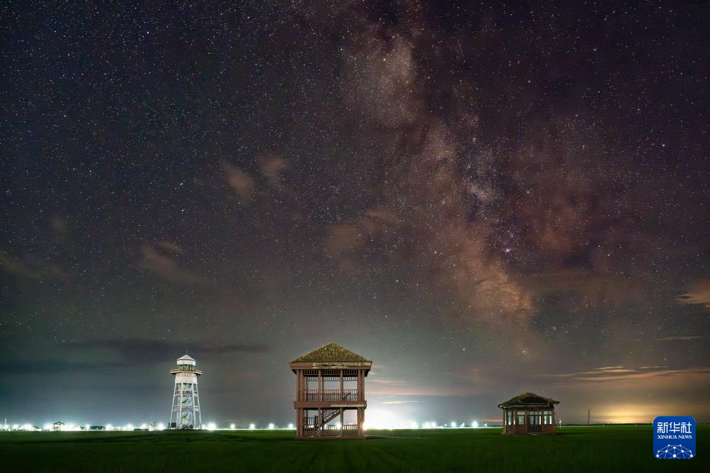 7月17日拍摄的星空下的富锦市万亩水稻公园局部。