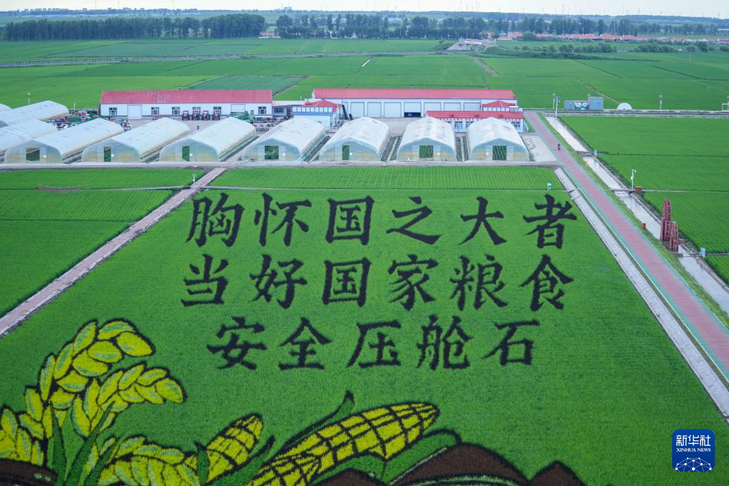7月17日在富锦市万亩水稻公园拍摄的稻田画。