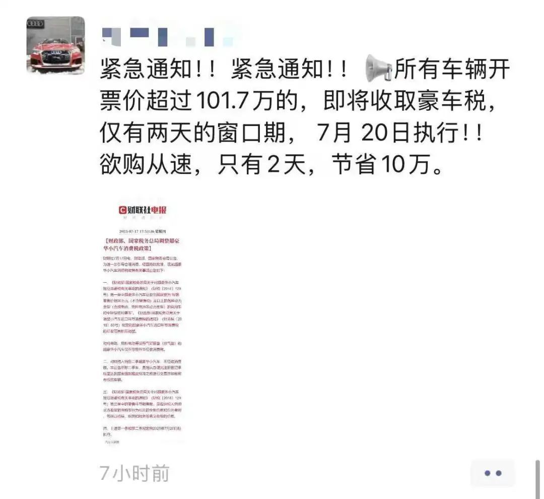 而且政策发布后几乎没有缓冲期,新规定自2025年7月20日起执行,想要买豪车的朋友,要趁这两天赶紧下手了。