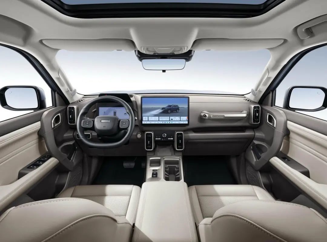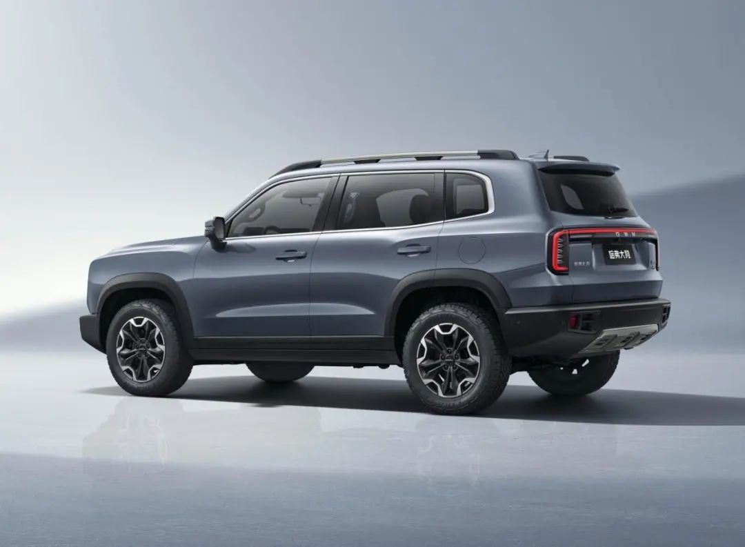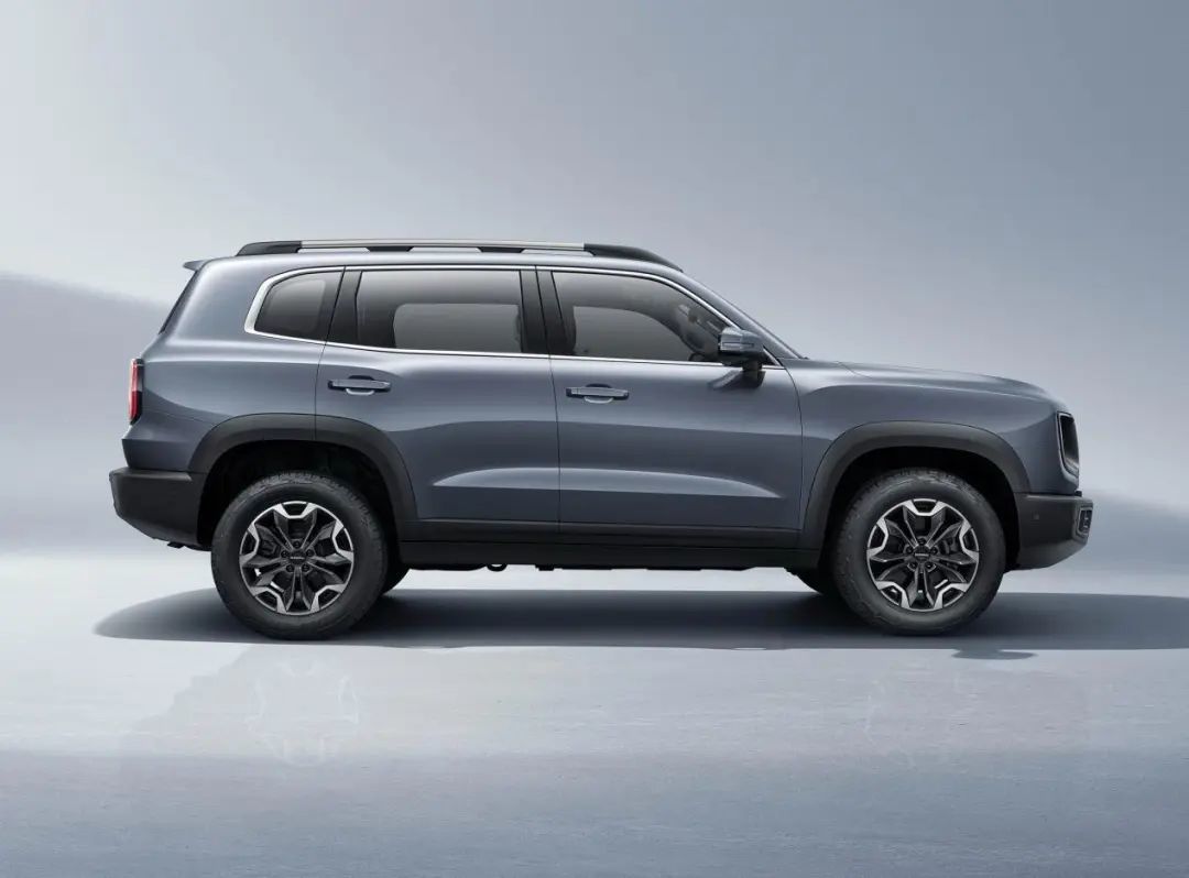侧面部分,新车基本延续了旧款的设计风格,主要为方正的造型和硬朗的线条设计,车身颜色方面除了保留了原先的隐蓝、揽月白、玄夜黑之外,还新增了苔岩绿和陨石灰两种全新配色,共计5种,选择更加丰富,除了陨石灰需要加4000元选装之外,其余配色均免费选择。尺寸方面,新车长宽高依旧为4620/1890/1780mm,轴距为2738mm,体型不算大。