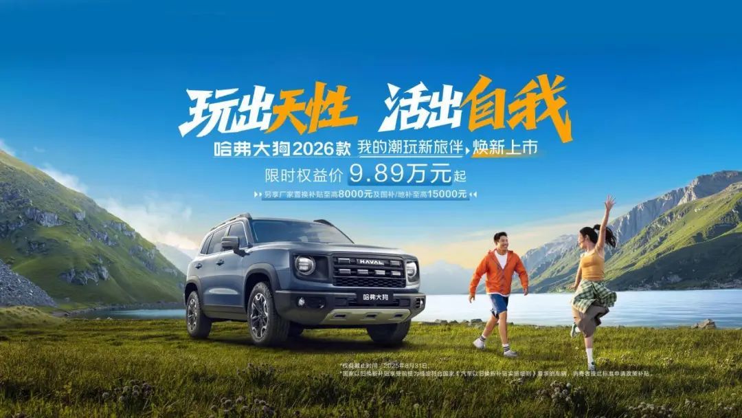 哈弗大狗凭借其帅气、硬朗的造型一直颇受年轻消费者欢迎。近日,2026款哈弗大狗也正式迎来上市,共推出了3款配置车型,官方指导价区间为12.39-14.99万,并且推出了限时权益价9.89-12.49万元,直接将起售价拉低到10万内,还有着厂家给出的8000元置换补贴等优惠,真的非常惊喜。