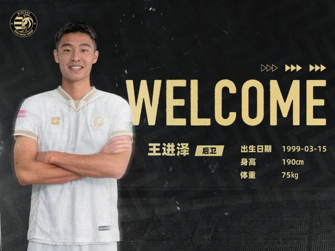 欢迎王进泽披上温州队的战袍!期待这位久经考验的绿茵多面手,在温州队的防线竖起定海神针,为温州足球注入硬核力量!