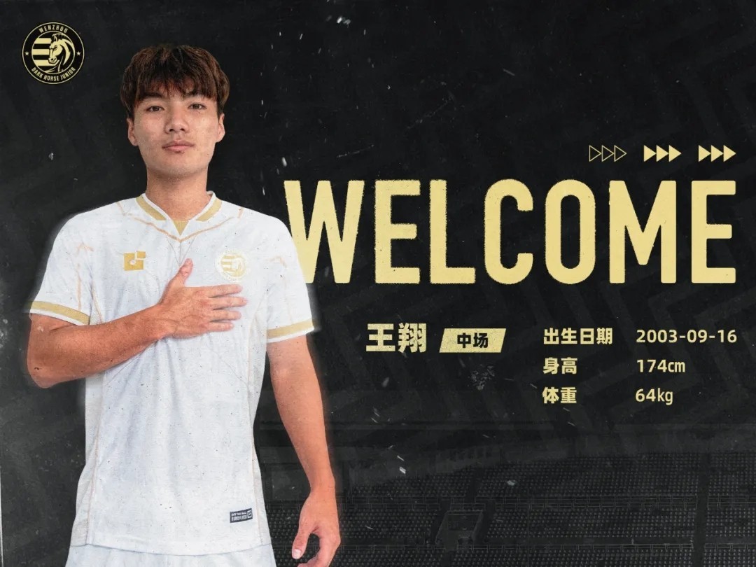 温州职业足球俱乐部热烈欢迎王翔的正式加盟!我们相信,王翔深厚的西班牙足球背景和多面手属性将极大丰富教练组的战术选择,提升球队前场创造力与得分能力。俱乐部期待他快速融入团队,在温州队的进攻体系中绽放光芒,成为撕裂对手防线的锐利武器。