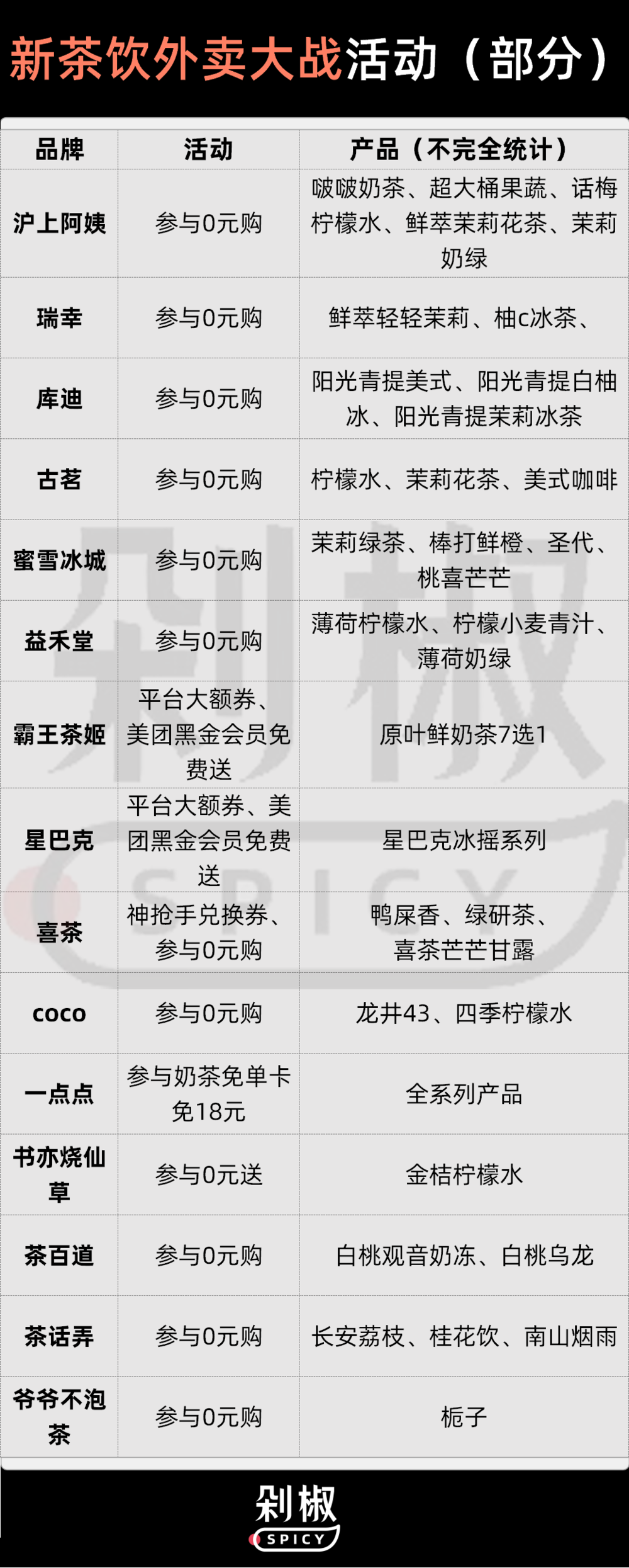 与之相比,大部分品牌只拿出了1~3款产品参加补贴,且多聚焦于柠檬水、基础茶等低价单品,最大限度降低品牌在补贴中的亏损压力。