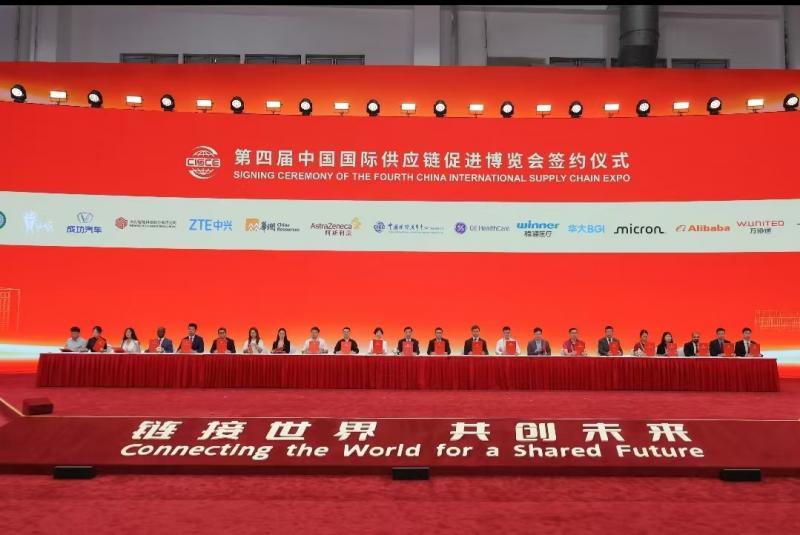 7月20日,第四届中国国际供应链促进博览会参展签约仪式在中国国际展览中心顺义馆举行。霍尼韦尔、GE医疗、西门子、康宁公司、住友电工、华润集团、中兴通讯、阿里巴巴、赛力斯、稳健医疗等102家中外企业和机构与链博会承办单位中国国际展览中心集团有限公司现场签署第四届链博会参展意向。现场签约数量比去年增加近50%。