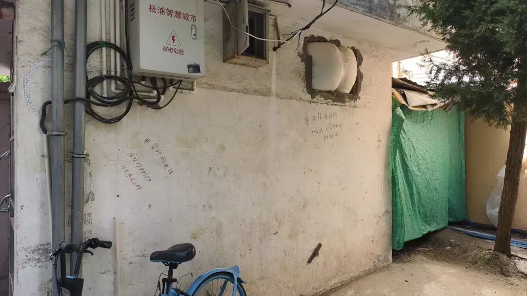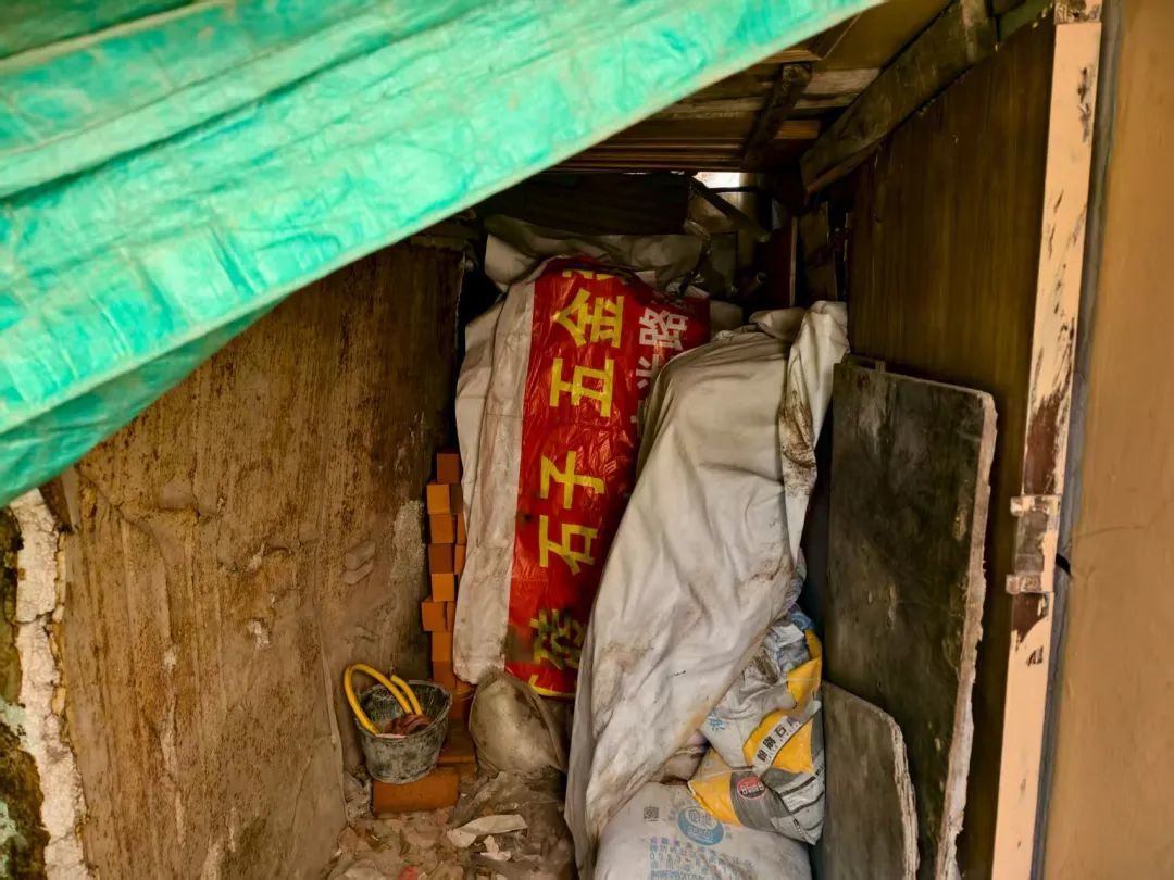 记者代灵的采访则是在杨浦区市光路工农四村1-45号附近,有居民反映沿街商户把如黄沙、水泥、砖块等建材堆放在商铺后方通道中,该区域原为小区公共通道,而且这些建材已经堆放了20余年,严重影响底楼居民的生活。“投诉后尽管有人上门迅速清理了一部分建材,但问题未根治,仍存在返潮风险。”