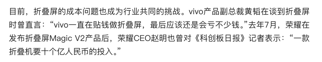 至于说,为啥别的手机厂商,要亏钱做大折叠嘛…