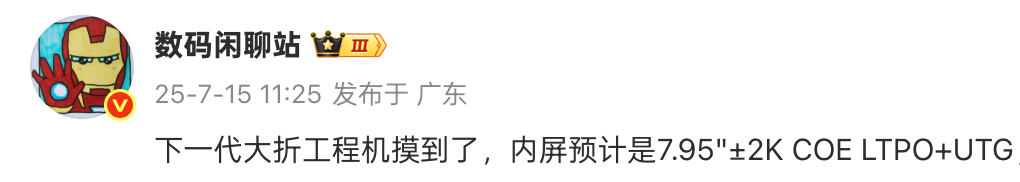 内屏进一步增大到 7.95 英寸,采用 2K COE LTPO 屏幕。