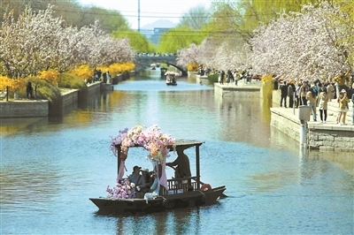 作为“京城春日里的三大花事”之一,今年元大都“海棠花溪”节虽然持续时间不长,却成为北京春日赏花经济板块中的重要一环。这条东西全长仅1.1公里的海棠花溪何以火出圈,秘诀就在“消费场景”的再造上:今年的海棠花溪节首次引入摇橹船,为海棠花溪增加了动感,丰富了游人的体验项目;两岸流动的十余辆胶囊车又为这里平添了烟火气,胶囊车上有咖啡有酒,有香味四溢的人间烟火,也有清新雅致的文创产品,弥补了往年海棠花溪两岸缺乏消费场景的不足,延长了游人的逗留时间。通过多元化体验式服务,今年的海棠花溪为市民游客“花”式解锁了京城春日的别样浪漫,也带来了大客流。“日均客流量相比去年上涨了53%!”元大都城垣遗址公园主任张宏涛介绍,海棠花溪节开幕一周接待游客41万余人次,日均待客约5.8万人次,高峰时段日客流量达7万多人次,而去年同期,海棠花溪节14天的总游客量才57万余人次,日均游客量3.8万余人次。