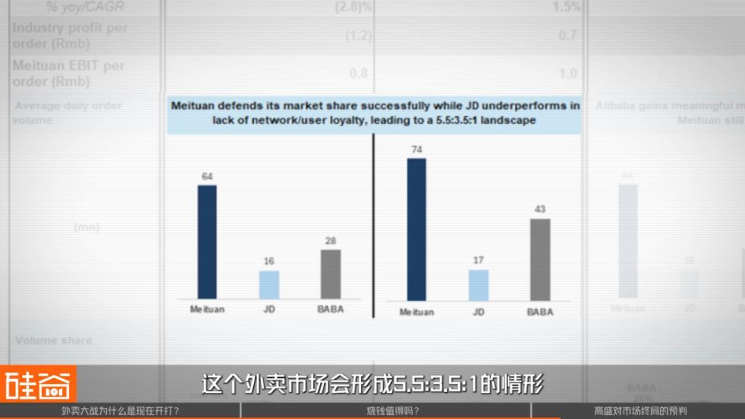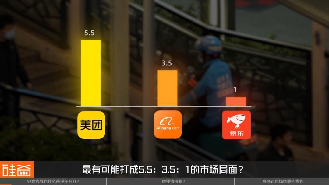 近日高盛放出预测,这场外卖大战最终可能以美团:阿里:京东分别以5.5 : 3.5 : 1割分市场的结局收场。可三年后整个市场利润才300亿,现在巨头们烧的钱值得吗?
