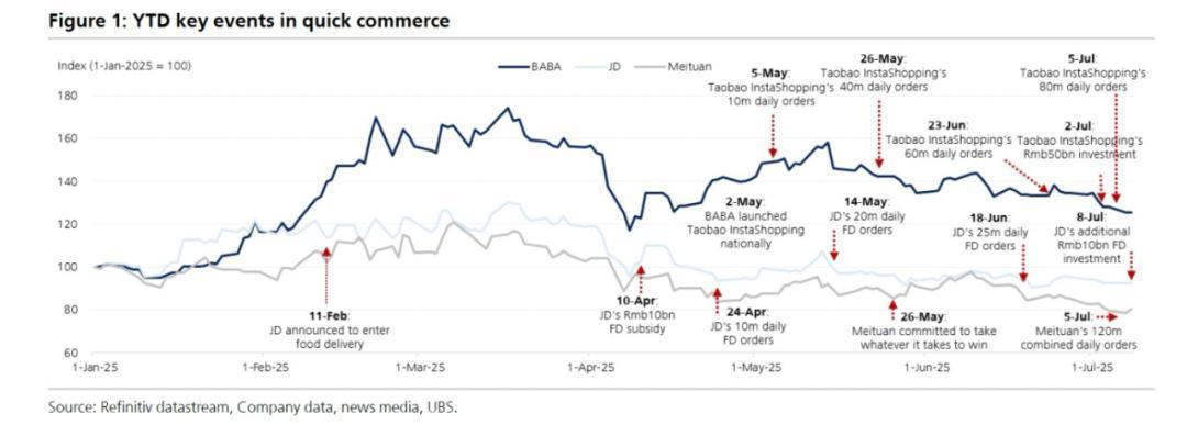 即时零售领域的年初至今(YTD)关键事件数据来源:UBS