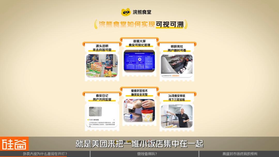美团当然要防御反击,除了跟进补贴之外,高盛还很看好美团做的浣熊厨房:美团来把一堆小饭店集中在一起,做一个标准化的厨房,一起用标准的设备、保证比那些小作坊干净,标准化出餐,甚至还能通过直播厨房画面,来让用户心安。商家负责做饭,骑手们就在门口等着,这样就省去了骑手满城跑来跑去取餐的成本,可以说是中央厨房的外卖版。