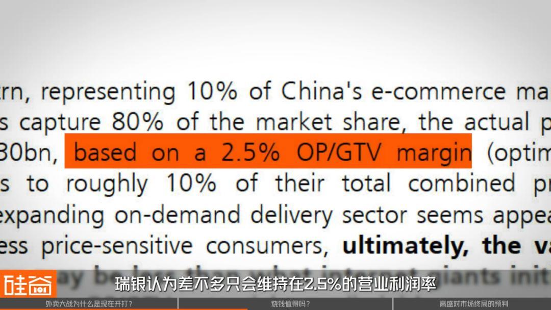 如果头部的这三家公司,占据了80%的总市场份额,由于它不是由一家垄断,所以竞争始终存在,消费者始终会对价格敏感、会去跨平台比价,瑞银认为差不多只会维持在2.5%的营业利润率,那么整个市场实际的利润约300亿人民币。这点利润相比于现在的投入,很明显不太值得。