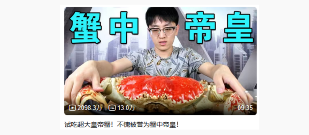 当时他作为月薪一万的普通打工人,花6000吃了一只皇帝蟹,贵价食材的猎奇感、工资与食材价格的对比冲突让这条视频一炮而红。