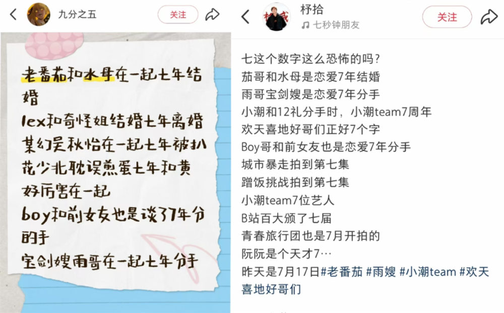 并开玩笑称B站仿佛和“7”这个数字杠上了,站内许多初代百大UP主在恋爱或婚姻的第七年发生大变故,分手、结婚或离婚。