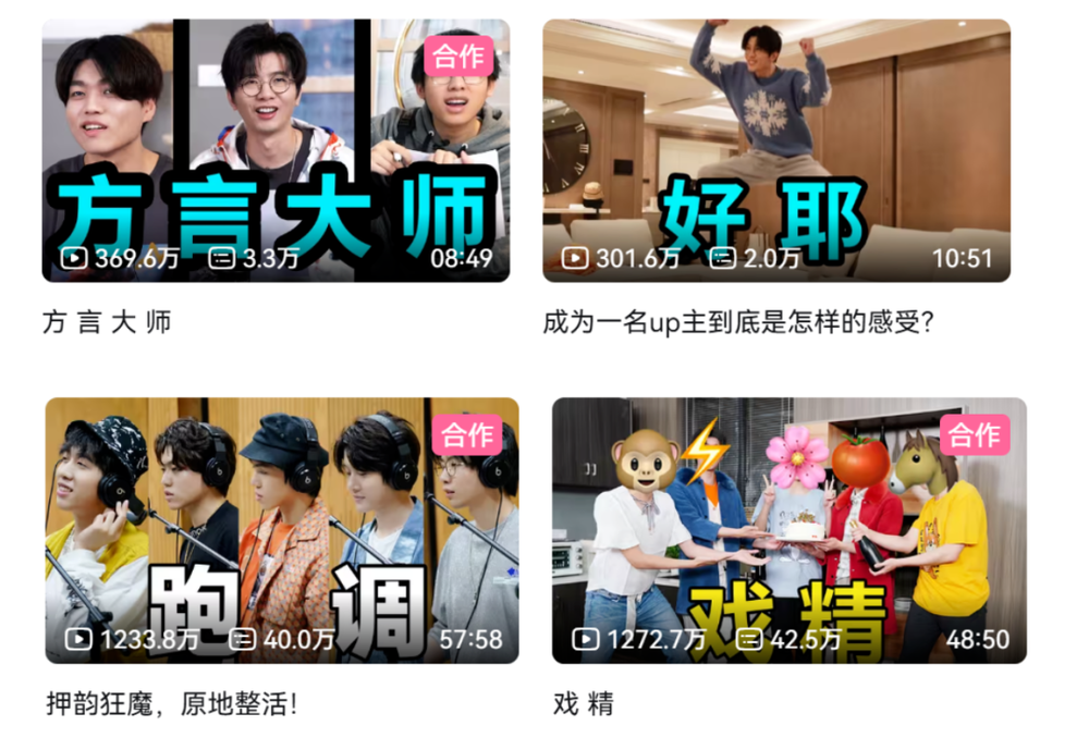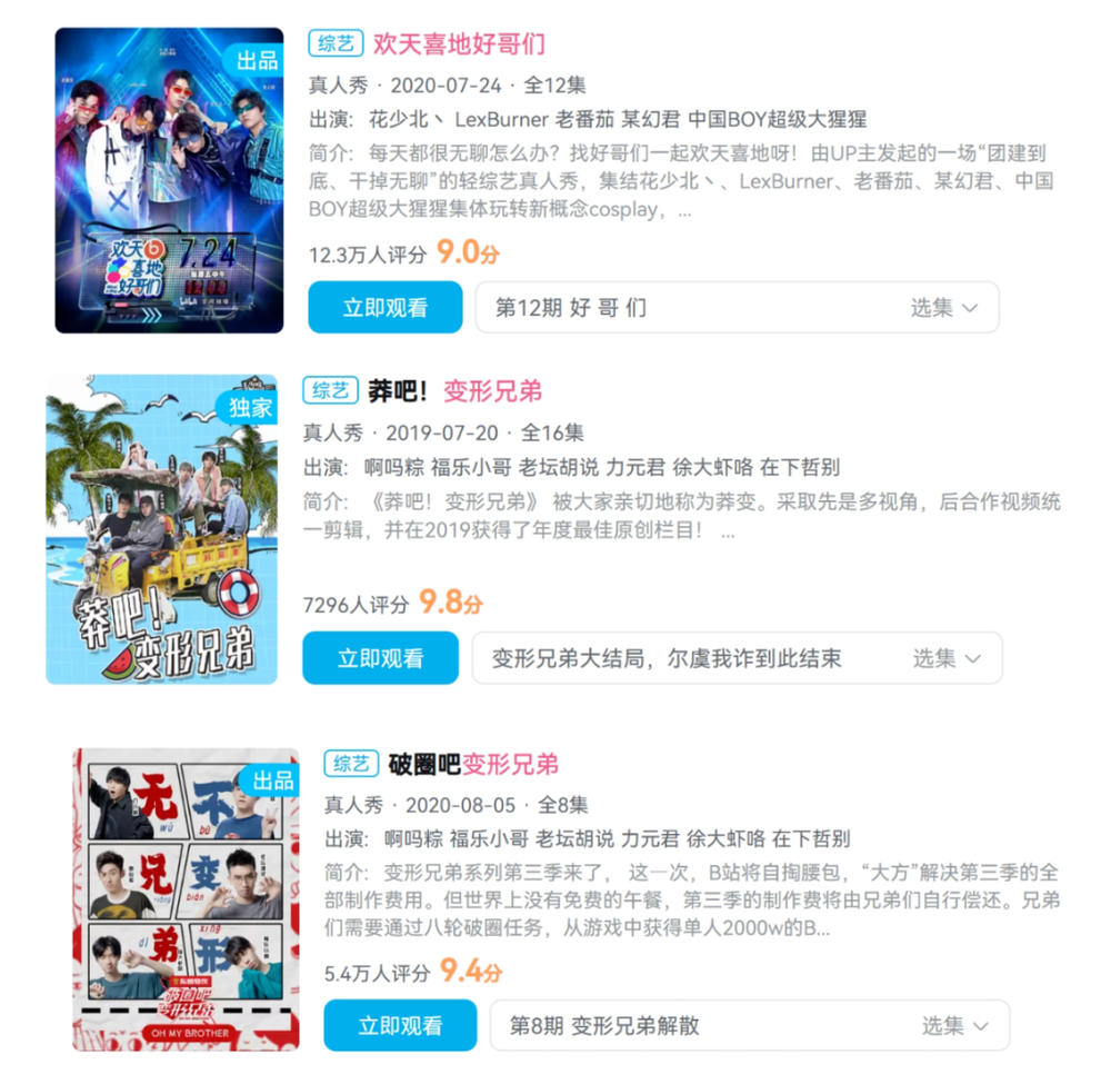 比如通过邀请组织多位人气高的UP主一起拍真人秀,让他们共同生活碰撞出各种笑点,打造了多个人气颇高的站内节目。