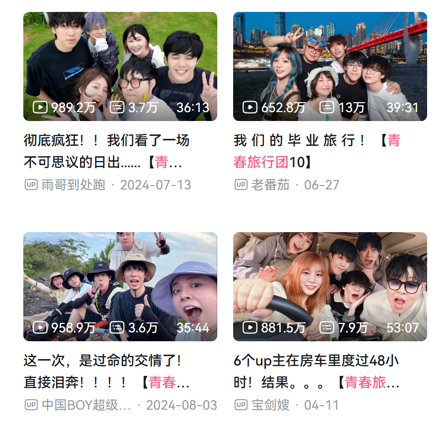 因此谋求转型的机会,一些人开始把镜头对准自己的生活,一些UP主开始组团拍摄视频,把群像作为新的视频点。