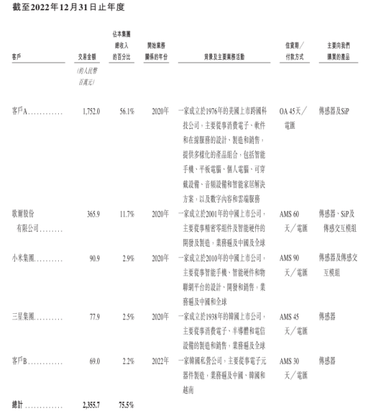 值得注意的是,公司前五大客户合计贡献了总收入的75.5%,其中苹果公司单一主体的收入占比即高达56.1%,超过公司总收入的一半。