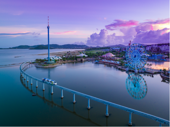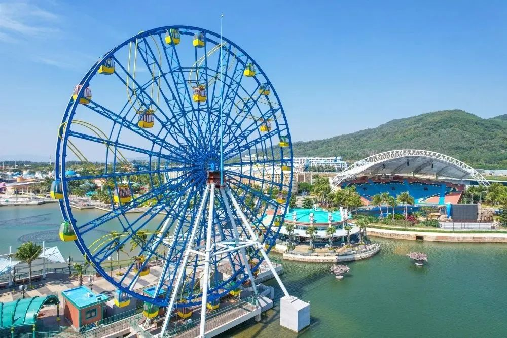 当然,这里的游乐设施也绝对让你心跳加速!“瞰海塔”让你俯瞰整个乐园与大海的壮丽景色;“鲸破天际过山车”带来风驰电掣的刺激体验;“南海之眼摩天轮”则充满浪漫氛围,适合情侣一同乘坐,在最高点俯瞰绝美海景。还有“铁锈山激流”,让你在水花四溅中感受清凉与刺激。(图片来源:海南海洋欢乐世界)