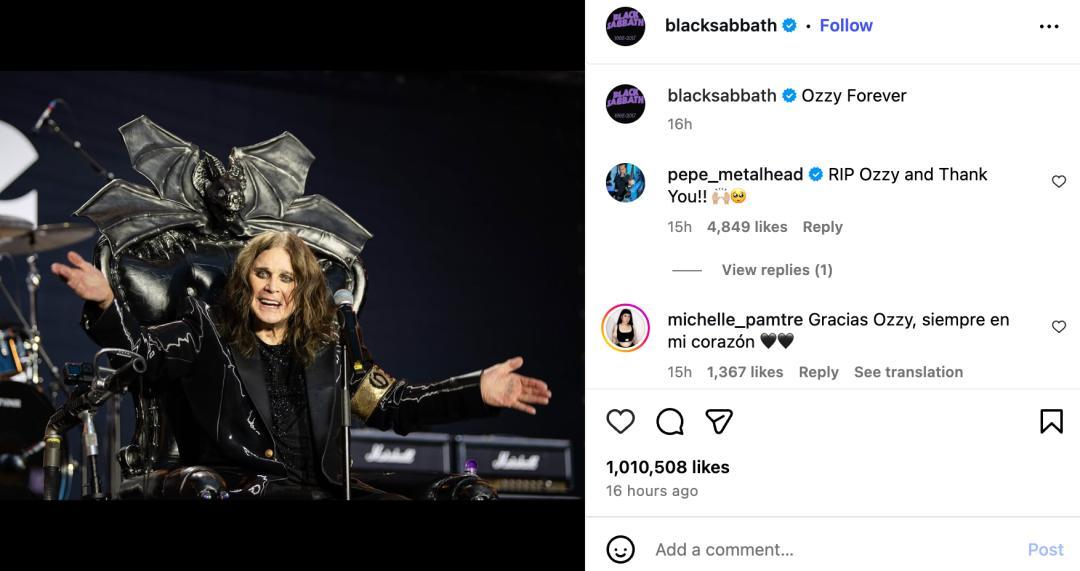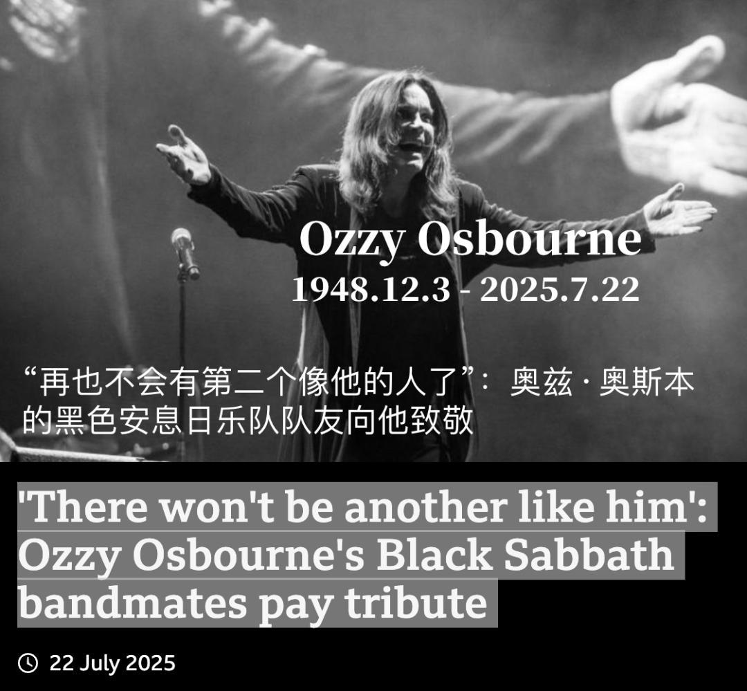 2025年7月22日,奥兹·奥斯本(Ozzy Osbourne)的家人在社交媒体上发布声明,宣布了这位重金属教父的死讯。
