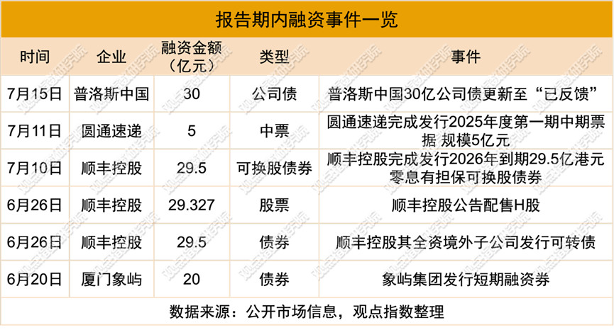 7月10日,顺丰控股于2026年到期的29.5亿港元零息有担保可换股债券完成发行,所得款项净额预计约为29.006亿港元,配售所得款项总额约为29.505亿港元,净额约为29.327亿港元。